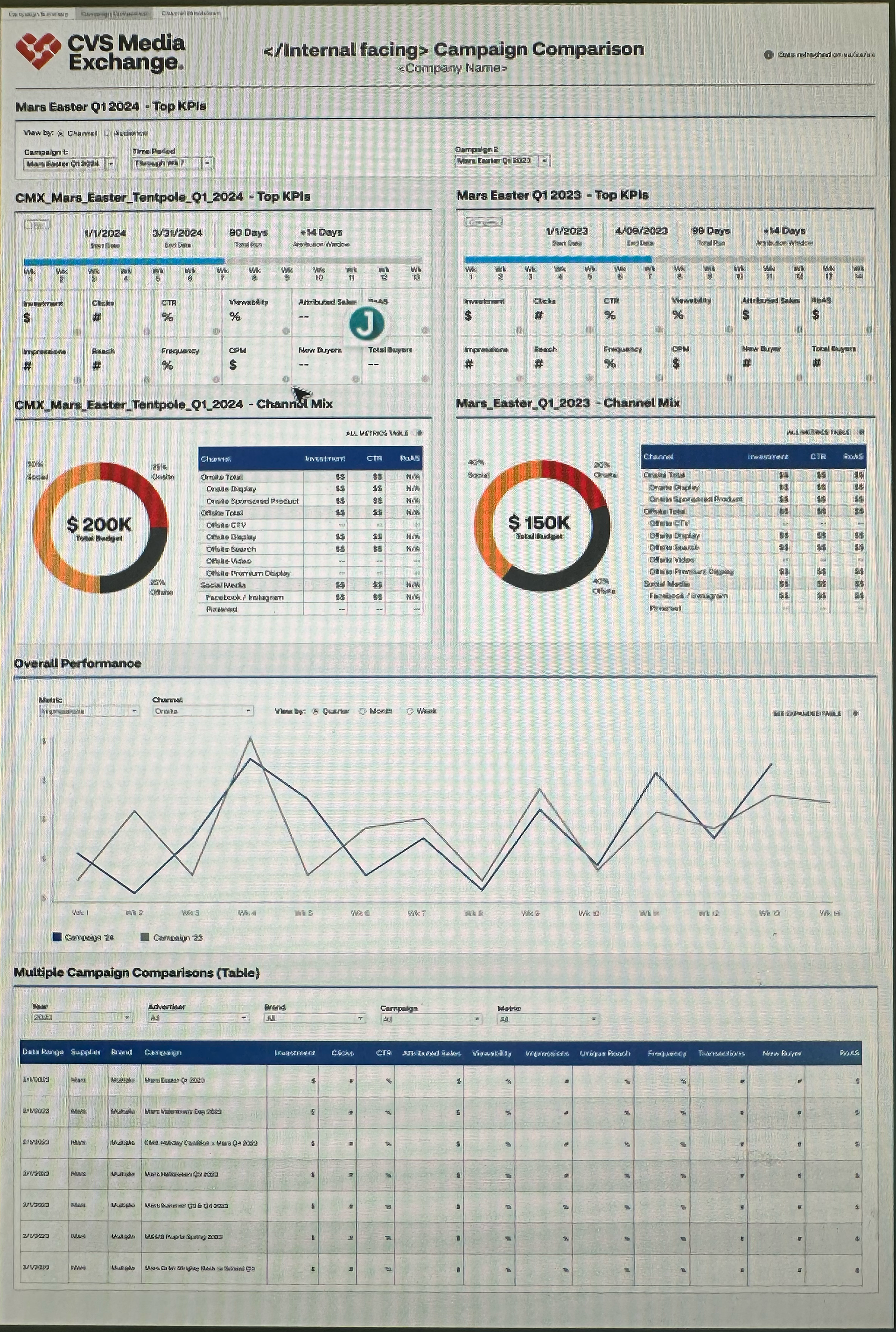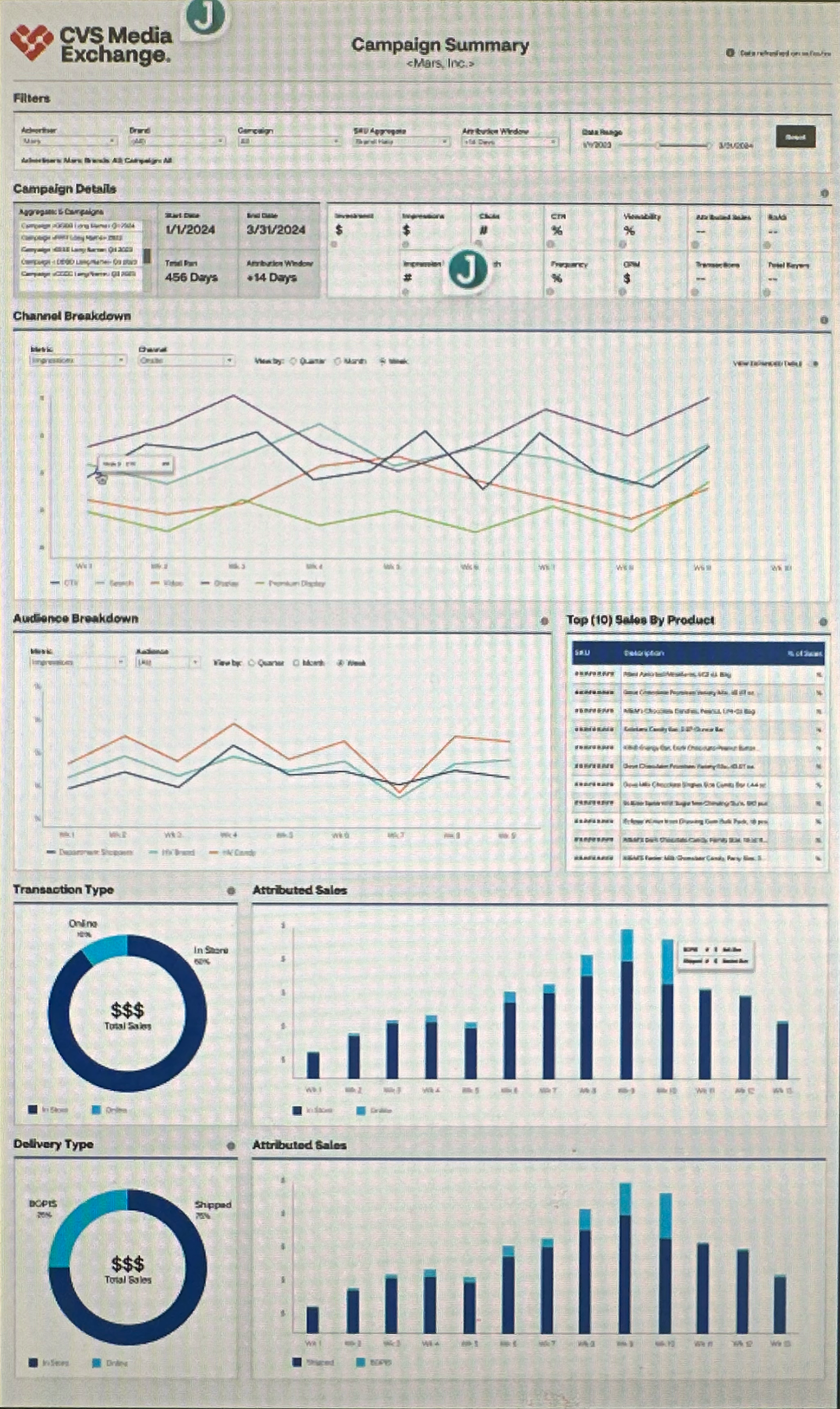 This was the case with the CMX (CVS Media Exchange) Dashboard. CMX is a data-led, technology-driven retail media network that enables external marketing partners to reach CVS Pharmacy customers and CVS loyalty ExtraCare card customers through a variety of digital platforms, including social channels, programmatic display and on CVS.com.