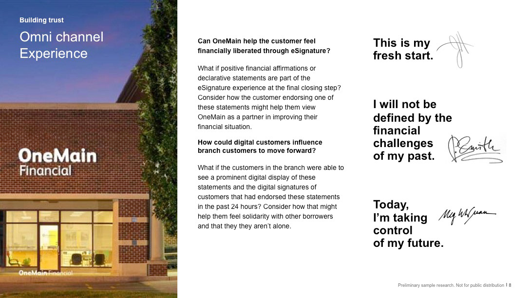 As the Covid-19 Pandemic was beginning to sweep the country in early 2020, and OneMain was in the process of transitioning their lending process fully online. Until that point, signing of the loan had to be finalized in person within a branch.