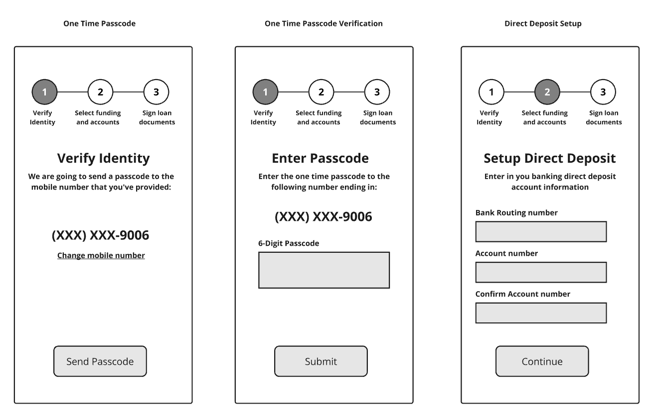 The initial draft enabled an in-depth conversation on implementing optical character recognition (OCR) to help verify income. After constructing a process map, I created more wireframes for what income validation might look like.